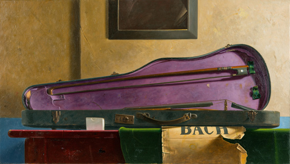 "Viool in kist" 45x 79,5 cm olie/doek 2017